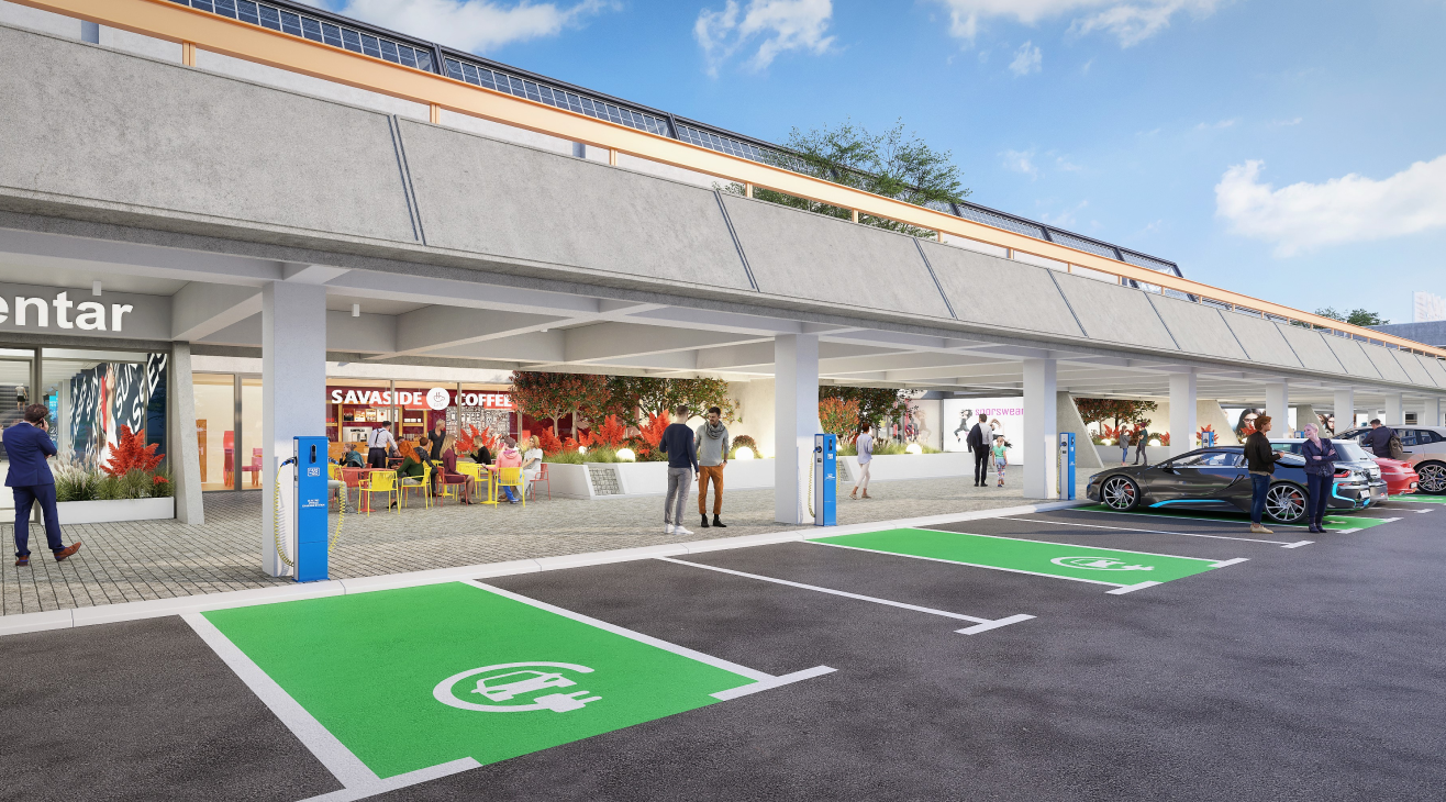 Kancelarije sa integrisanim zelenim površinama i bogata šoping zona pružaju potpuno nov doživljaj rada i boravka.